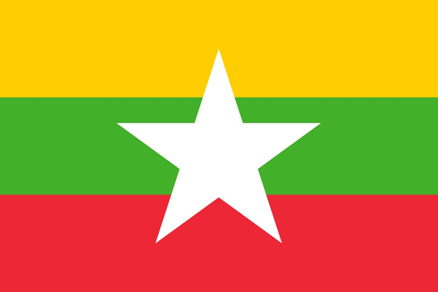 ミャンマーの国旗の配色を一覧にまとめました。ミャンマーの国旗の色や形をお探しの方へ。